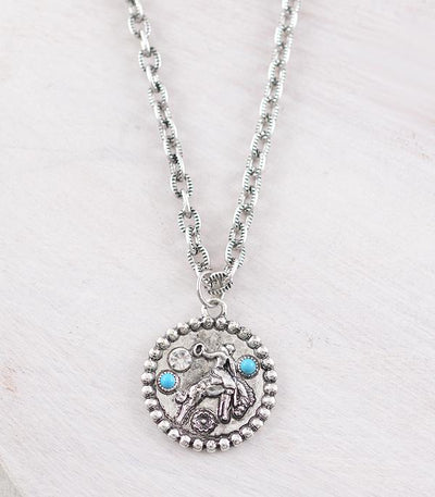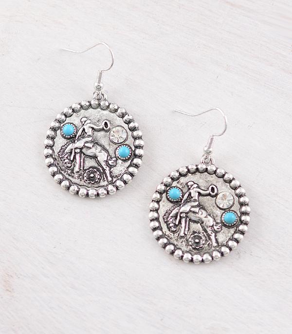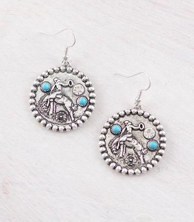 Kicking Up Dust Bronc Rider Fashion Necklace Or Earrings - Turquoise Rhinestone