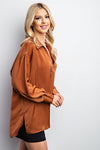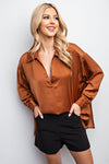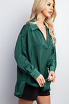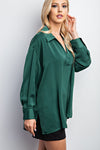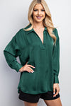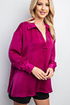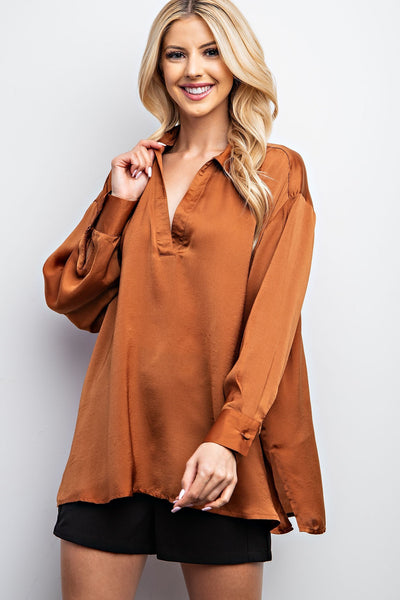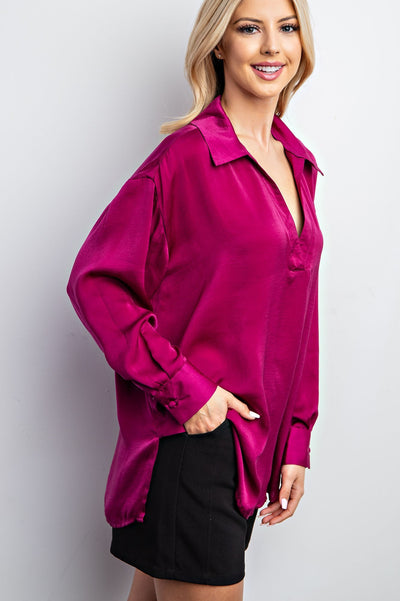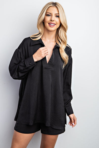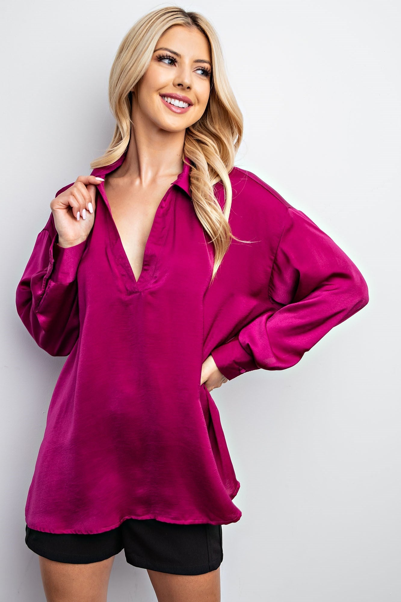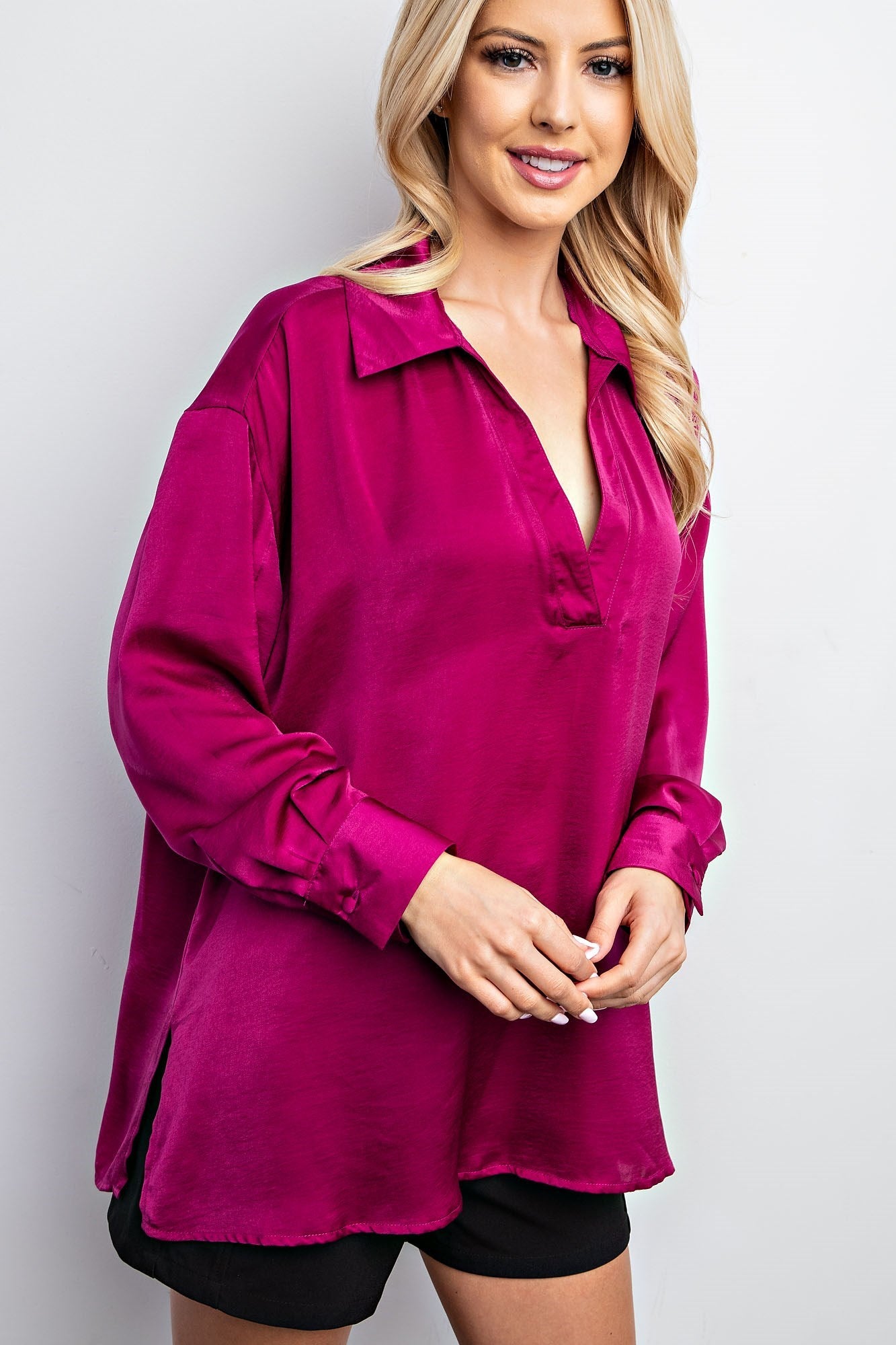 Stay chic and comfortable with our Long Sleeve Collared Blouse. This stylish top features delicate cuffs with button closure and side slits, crafted from soft and breathable 100% polyester. Elevate your everyday look with this perfect blend of style and comfort.