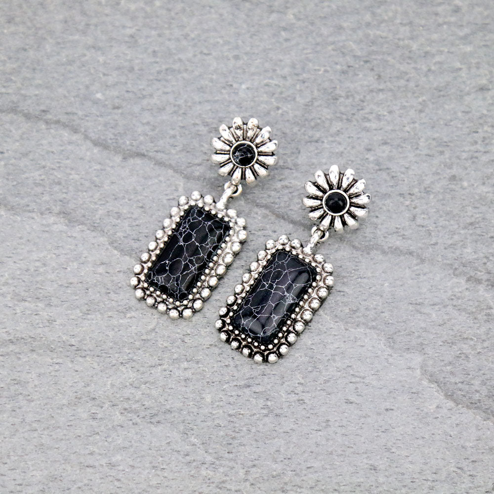 Midland Floral Concho Drop Fashion Earrings - Black