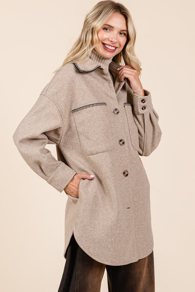 Indulge in style and comfort with our oversized fleece long-body button-up jacket. Featuring a chic and simple design with a collar neck and loose-fit, this jacket is the perfect addition to your fall and winter wardrobe. Stay warm and fashionable with the patch pockets and side slits, making it perfect for daily wear. Elevate your look with this must-have outerwear for young contemporary women.