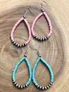 Parody Cylinder Bead Center Navajo Teardrop Earrings - 3"