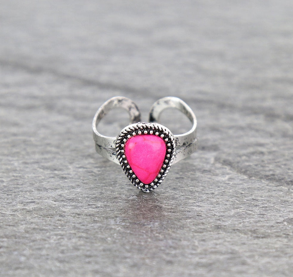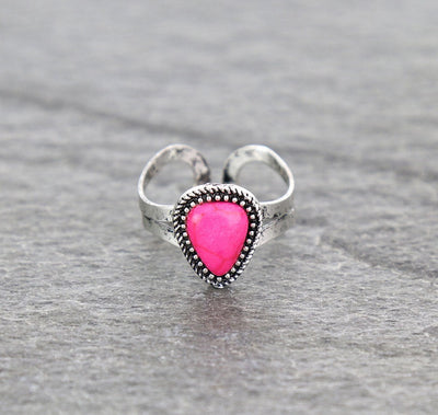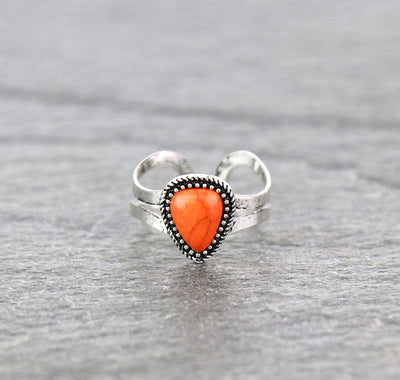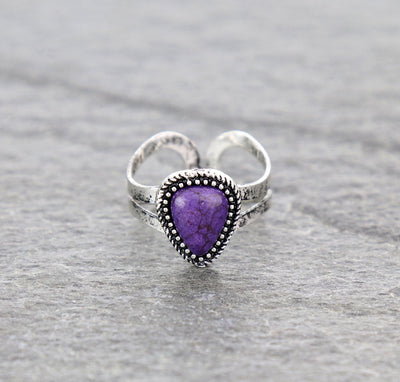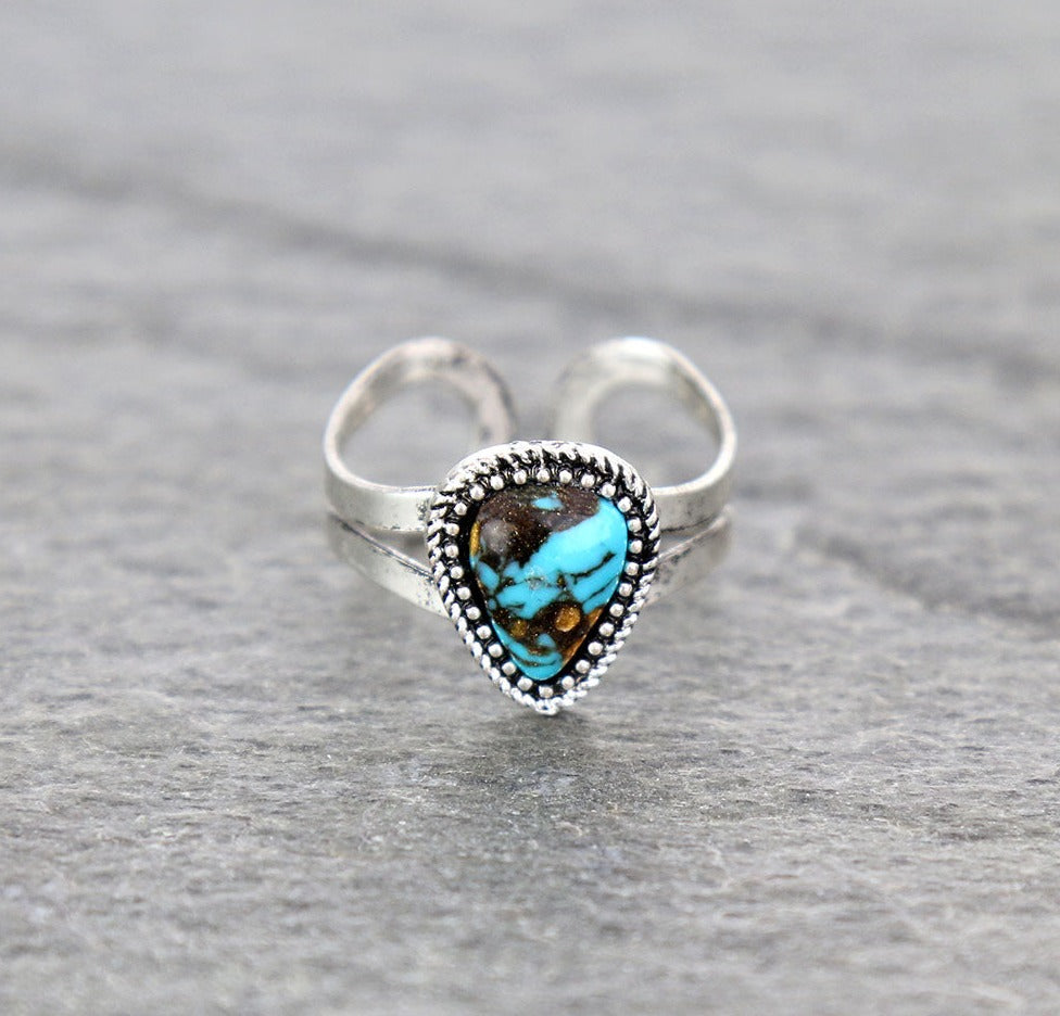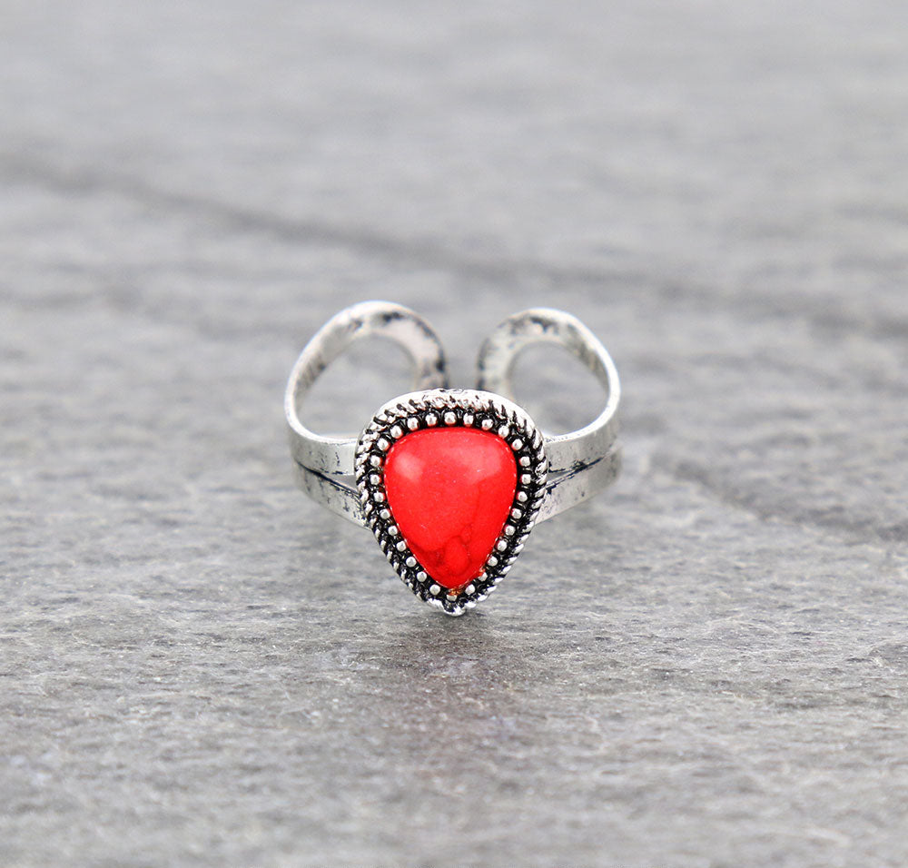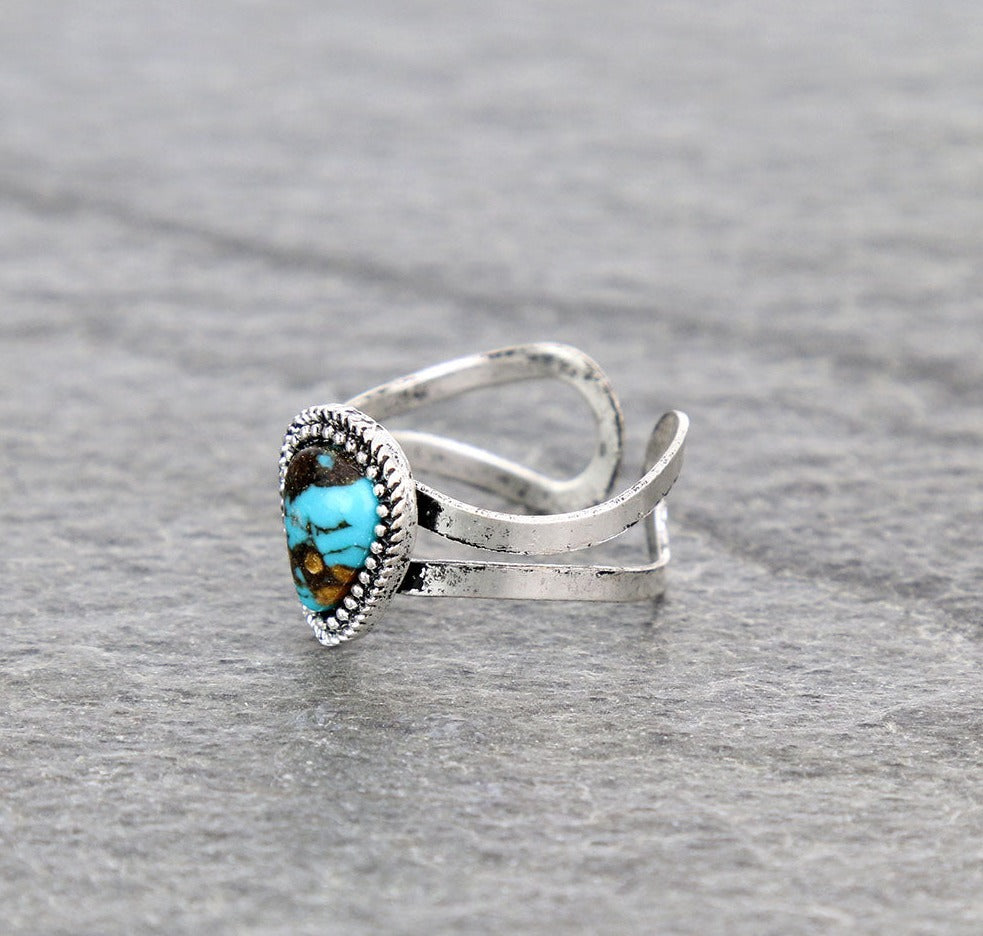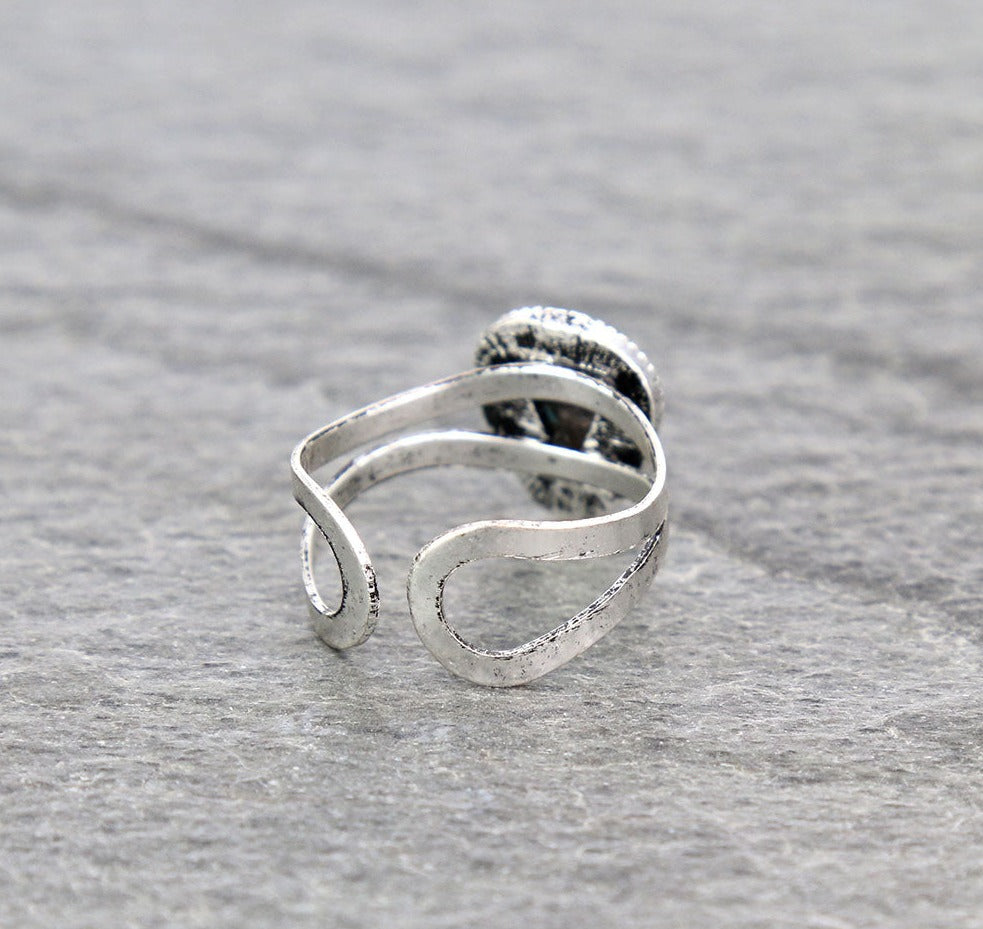 Reagan Fashion Silver Roped Stone Teardrop Ring