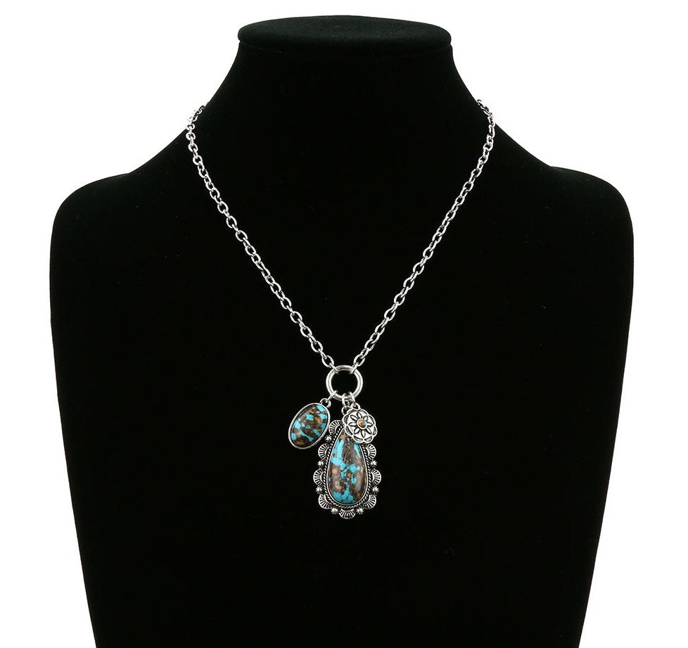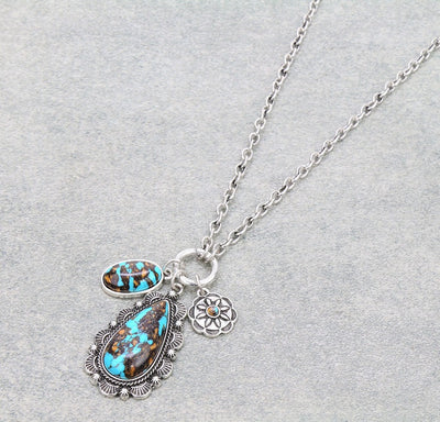 Remy Turquoise Mix 3 Charm Fashion Necklace - 18"