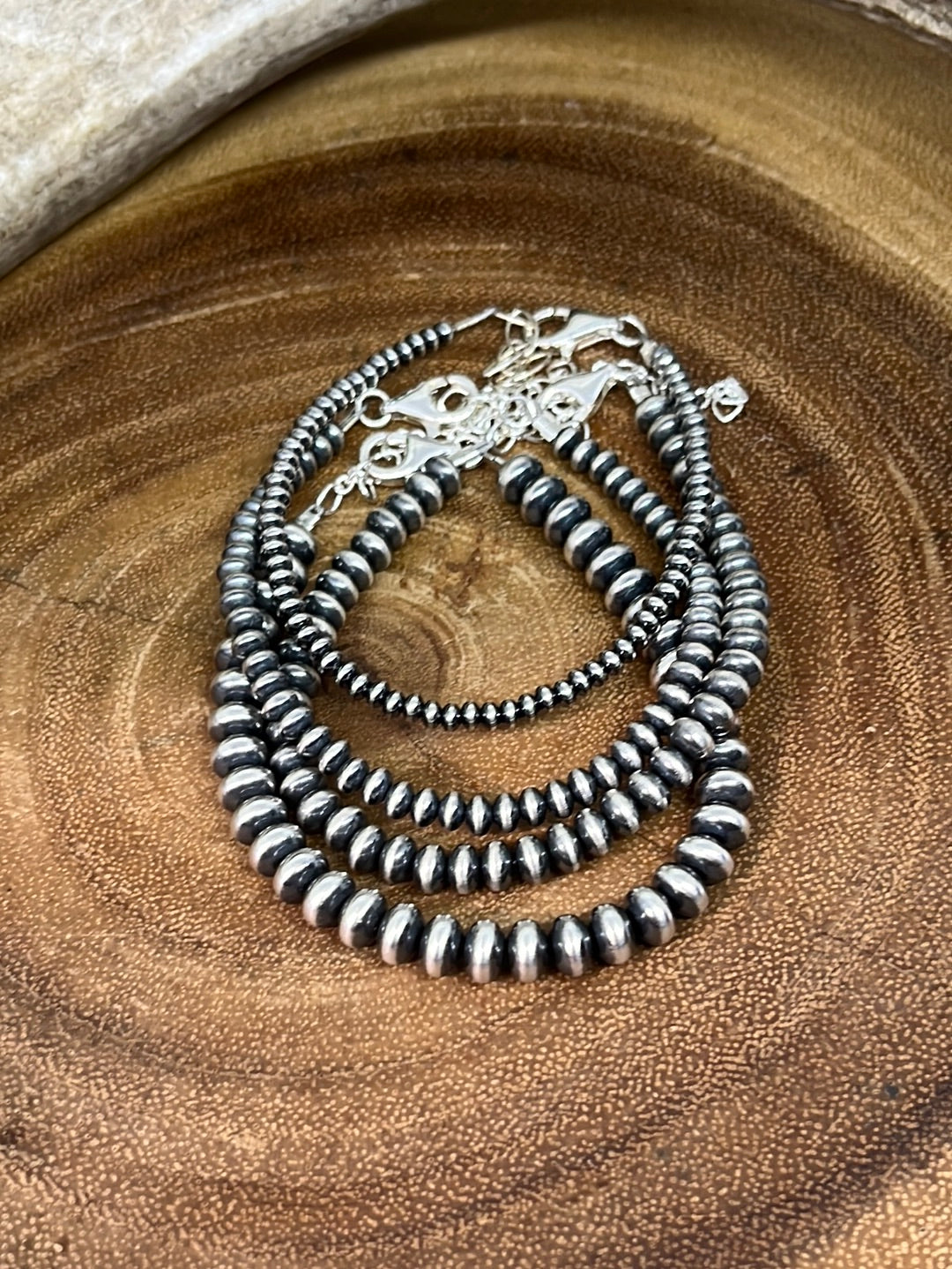 Stella Navajo Saucer Sterling Clasp Bracelet: 3mm - 7mm