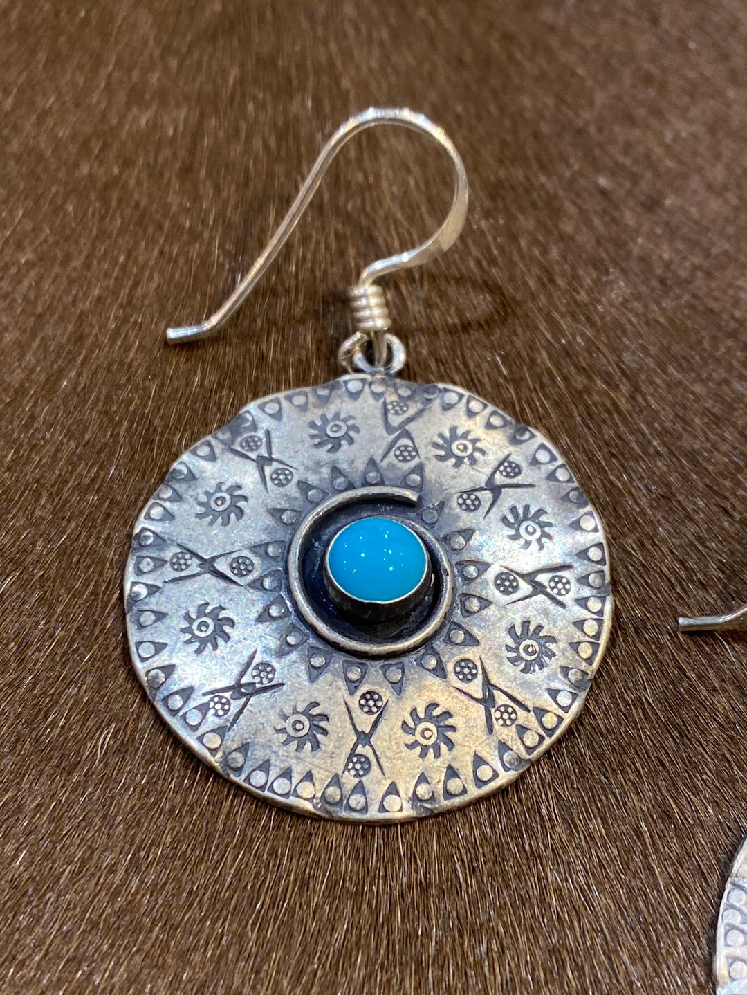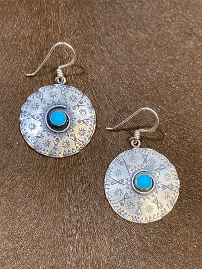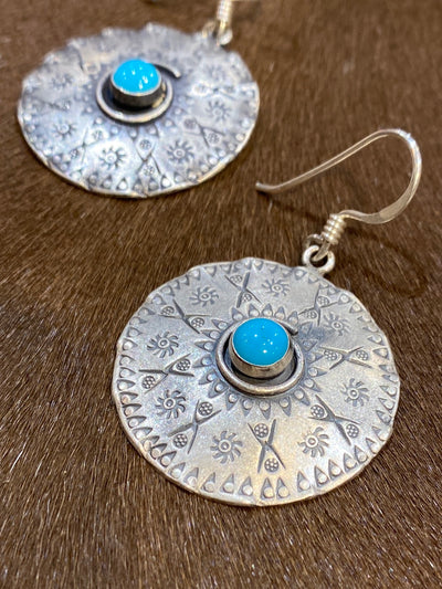 Sterling Stamped Medallion Earrings - Turquoise