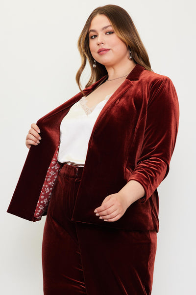 This blazer is cut from plush velvet that's soft to the touch. It has notched lapels, an open front placket, and ruched three-quarter sleeves. Pair yours with our coordinating velvet separates or mix it up with contrasting trousers, denim, or something slinky underneath.