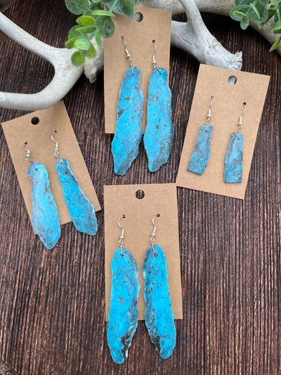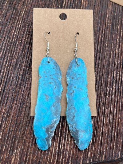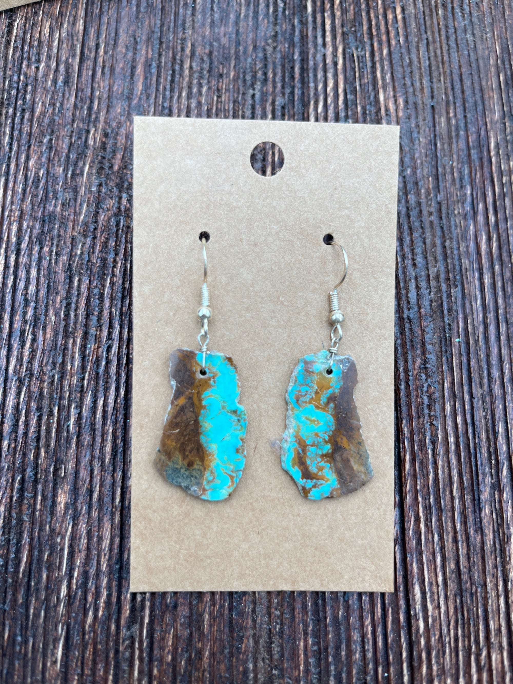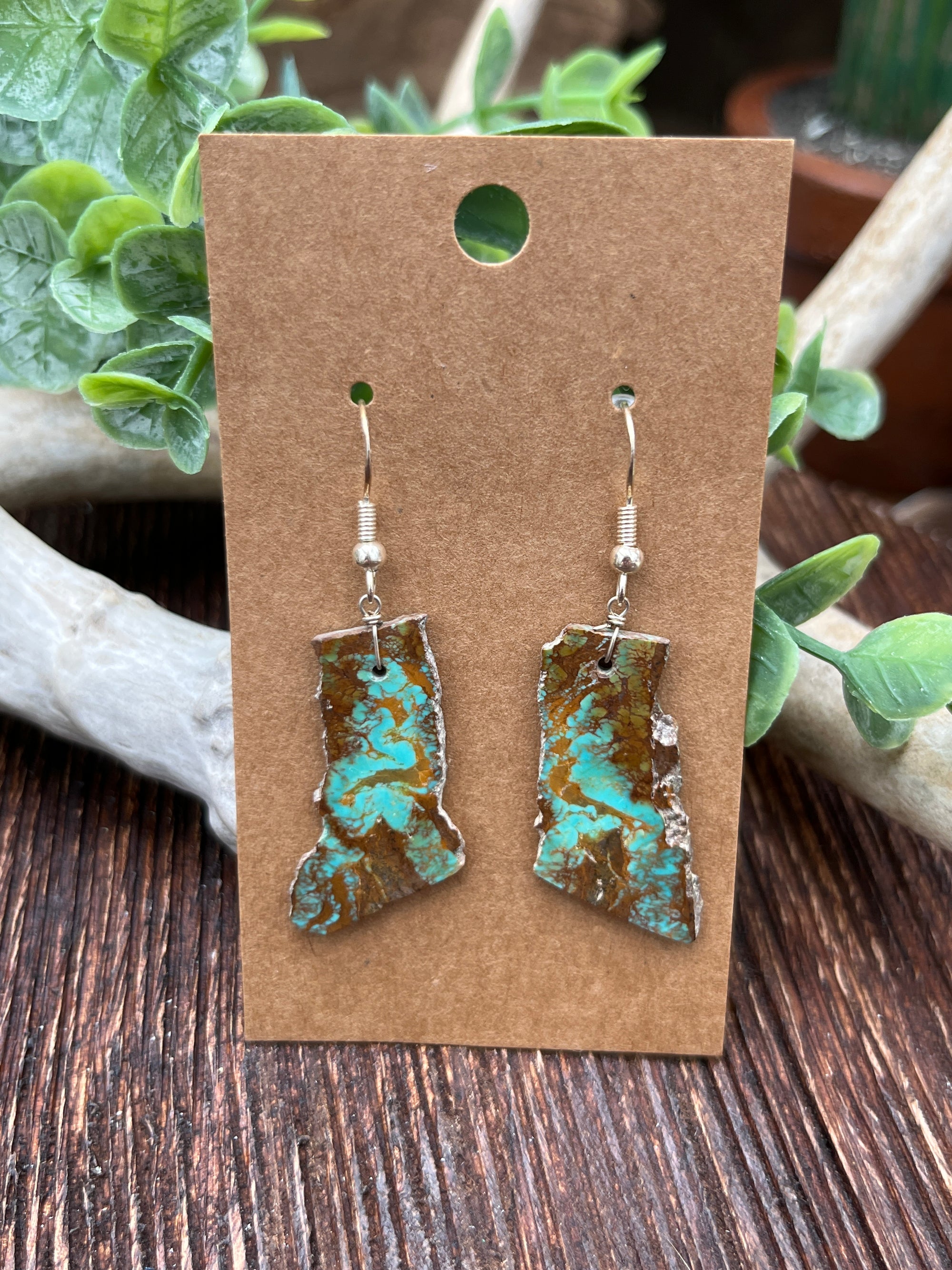 Venezia Sterling Raw Natural Cut Slab Earrings - Turquoise
