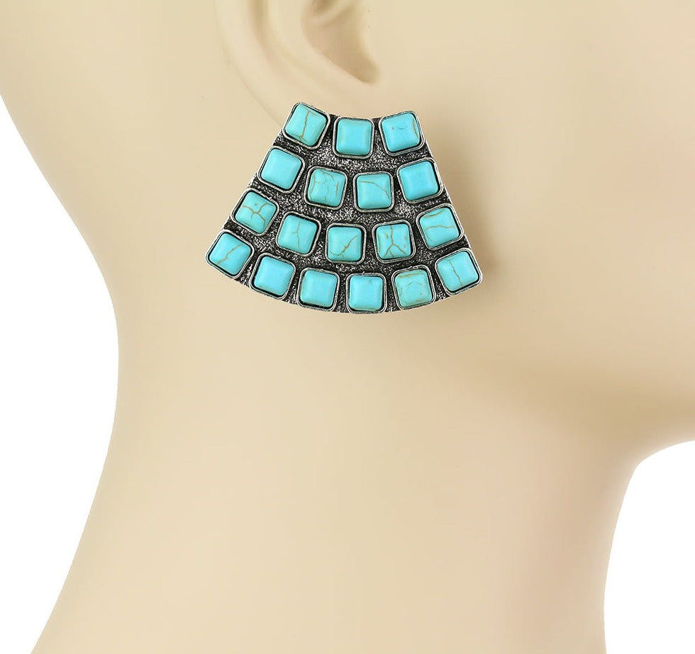 Venti Fashion Stone Pyramid Stud Earrings - Turquoise