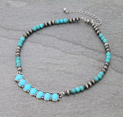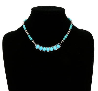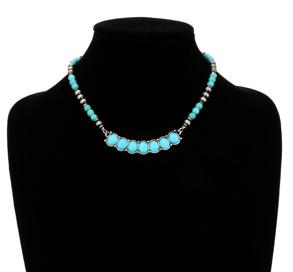 Vivi Fashion Curved Stone Pendant Navajo Necklace - Turquoise