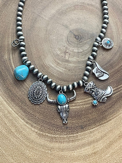 Wild West Navajo Charm Turquoise Necklace - 16"
